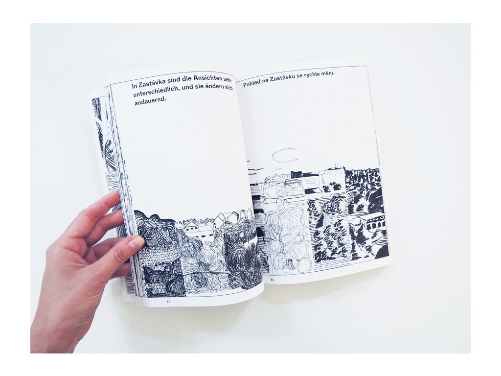 Zastávka means bus stop in Czech – an unromantic name for a young village that still lacks a centre, serving merely as a traffic hub for the surrounding towns. Zastávka, south of Brno, is not a place where anyone lingers, it is where you change buses and travel onward: an urban model prevalent throughout the world. The Czech artist Kateřina Šedá was invited to Zastávka by a 15-year-old boy who goes to school there, but lives elsewhere. Together with five other students she began a visual field research project that was presented in 2013/14 at the exhibition »At Sixes and Sevens« at the Museum for Contemporary Art in Leipzig. Under the joint name BaTeŽo Ka MiKiLu, the six teenagers reproduced their Zastávka as a walkthrough installation, now available in the form of a guide-book including commentaries and interviews with all the participants.