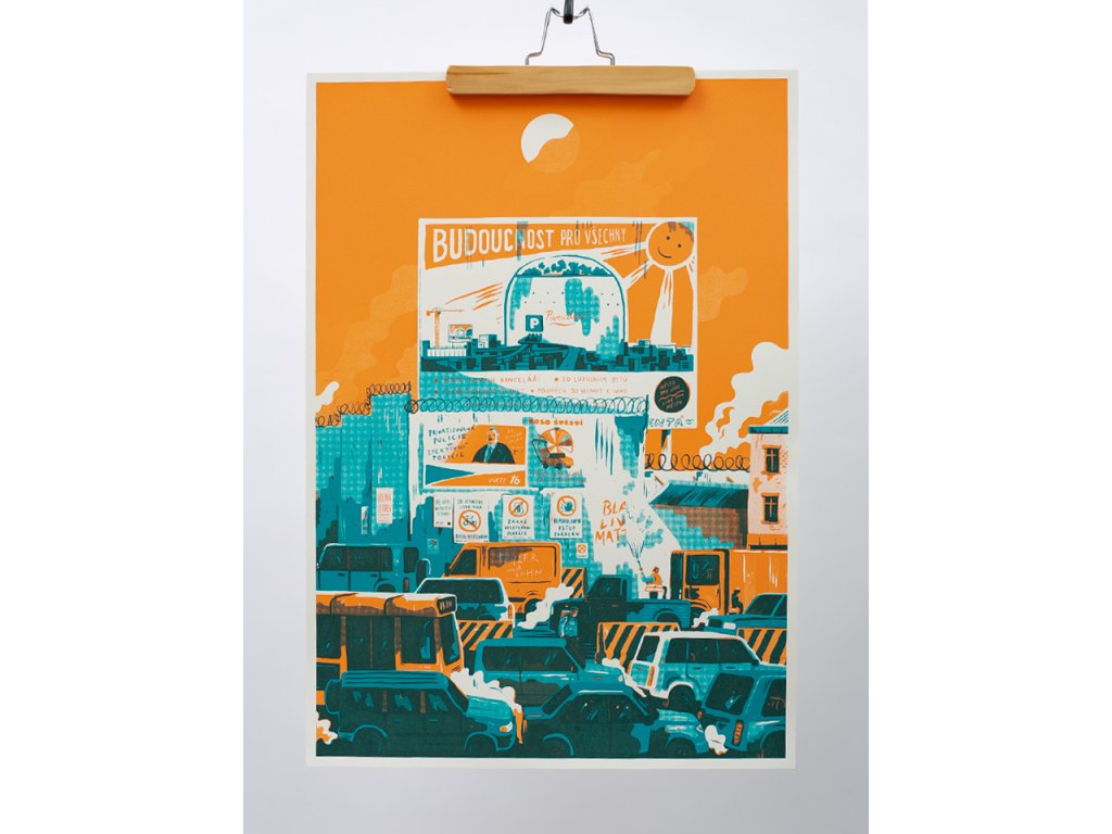 Plakát tisknutý metodou sítotisku pro časopis o současné ilustraci FŮD.