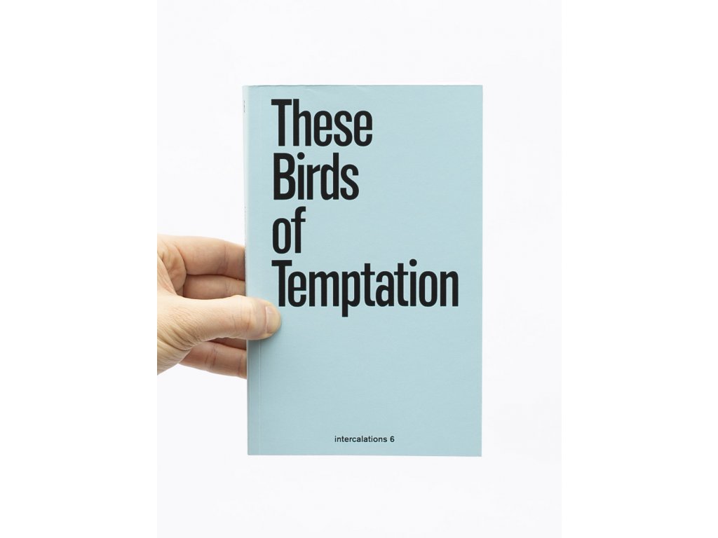These Birds of Temptation. Edited by Anna-Sophie Springer & Etienne Turpin. With contributions by Eddie Bartley, Ari Bayuaji, Bik Van der Pol, David Bonter, Xavi Bou, Tiffany Bozic, Lêna Bùi, Bertolt Brecht, Wallace Craig, Mark Dion, Andreas Doepke, Jimmie Durham, Anne Geene, Sophia Gräfe, Mary Ellen Hannibal, Nina Katchadourian, Bernie & Kat Krause, Barbara Marcel, Anaïs Nin, Arjan de Nooy, Megan Prelinger, John Paul Ricco, David Rothenberg, Juliana Spahr, Bruno Schulz, Anna-Sophie Springer, Frank Steinheimer, Yoko Tawada, Anna Tsing, Etienne Turpin, and Francesca Woodman. Design in collaboration with Katharina Tauer.