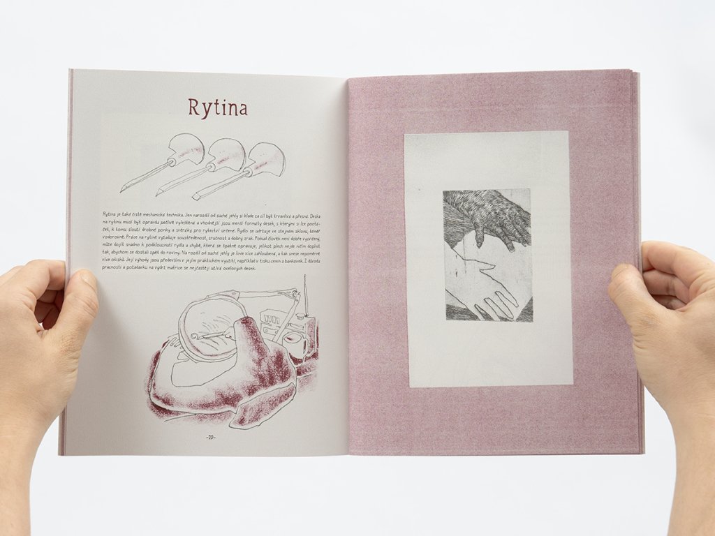Druhý díl plánované edice autorských brožur, která postupně představí jednotlivé grafické techniky. Formou obrazově-textové příručky ilustruje jednotlivé postupy práce s hlubotiskem i dosavadní poznatky o tomto grafickém médiu. Vizuální sdělení v podobě grafických listů se v publikaci prolíná s odborným a popularizačním textem. Vydání edice má za cíl rozšířit pole poznatků a praktických možností jak pro samotnou výukuoboru grafických technik, tak i pro vlastní uměleckou praxi.