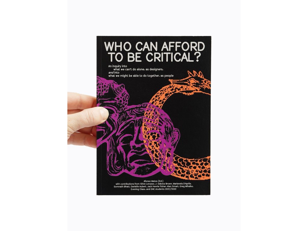 In a dynamic style holding multiple voices, Who Can Afford To Be Critical? discusses the limits that affordability, class and labour impose upon the educational promise of holding a ‘critical’ practice. Why do we tend to ignore the material and socioeconomic constraints that bind us as designers, claiming instead that we can be powerful agents of change? In fact, where does our agency lie?